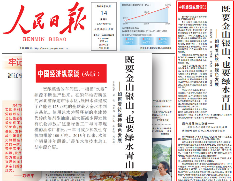 人民日報2019年8月14日署名文章:“中國經濟縱深談”系列述評之十二:既要金山銀山,也要綠水青山